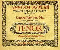 His name appears in the manuscripts exclusively as Šimon Bariona; the other variants of his name, Bar Jona and Madelka figure only in his printed music.[2] He is mentioned in various musical sources with other European composers such as Clemens non Papa, Jacobus Vaet, Thomas Crecquillon, Michael de Buissons and Orlando Lasso. He was the contemporary of Jacobus Gallus, Jan Simonides Montanus, Pavel Spongopaeus Jistebnický, Ondřej Chrysoponus Jevíčský, and Jan Traján Turnovský.