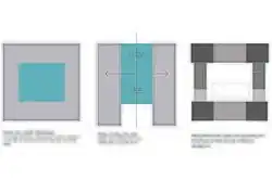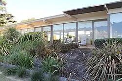 The central core program of the house was a pool and terrace, positioned right in the centre of the house. With the pool and terrace in the centre with programs surrounds [3] that engaged with it, allows family members to gather together. It was said that was one of Clerehan's conception of the house where how he deal with the provision of a frame for family life.[4] The pool and living room aligned on axis, forming the central part of a symmetrical square plan. Then the programs around the pool were given a corresponding position in the house's spatial hierarchy. Because of this distinct insistence of having an equivalent position of programs, the programs are mirrored and consist of dual garages and entrances. It was said that was one of Bell's typical style of architecture.[5]