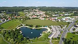 The industrial zone in Untergroßau has attracted a range of small and medium-sized enterprises (SMEs), particularly in sectors such as mechanical engineering, food processing, and service industries.[5] Despite this industrial growth, agriculture remains an integral part of the local economy, especially in the surrounding villages. Farming includes both crop cultivation and livestock production, and the region is known for its direct-to-consumer agricultural products, including wine and specialty foods. These are often sold through local Buschenschenken (seasonal wine taverns) and a weekly farmers' market held in the town centre.[10]