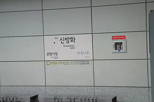 Sinbanghwa Station is a railway station on Line 9 of the Seoul Subway.