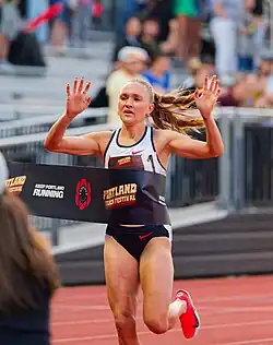Sinclaire Johnson (born April 13, 1998) is an American middle-distance runner.[2] She is the 2022 US champion over 1500 m and has represented her country at the 2022 and 2023 World Championships.[3] Competing for Oklahoma State University, she won the 2019 NCAA 1500 m title.