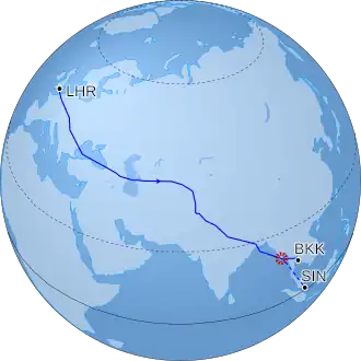 The accident aircraft was subsequently cleared to continue flying, and returned to Singapore on 26 May.[35][36] It subsequently completed a functional flight check on 23 July in preparation for a return to service.[37] On 27 July, the aircraft returned to service and resumed operations, flying from Singapore to Shanghai as SQ830. A Singapore Airlines spokesperson stated that the aircraft also "met the safety requirements set by the aircraft manufacturer, passed stringent safety checks by SIA’s engineering and flight operations teams, and successfully completed a functional check flight before its return to service."[38]