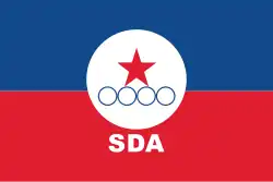 SDA was first established in 2001 by Chiam See Tong as he wanted to provide a common grouping under which different opposition parties could stand as a political coalition in elections against the ruling People's Action Party (PAP). The alliance initially consisted of his party SPP, NSP, SJP and PKMS. It was the first coalition to be formed in post-independence since 1963, after the now-defunct Singapore Alliance Party. Chiam became the first chairman of SDA. The logo of SDA is a star and four interlocking circles.[2]