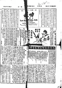 Lat Pau 6 January 1925, changed to vernacular Chinese