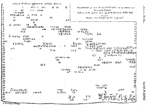 - ^ Prinsep, James (1848). "Inscription at Singapore". Journal of the Asiatic Society of Bengal. xvii: 154 f., reprinted in Miscellaneous Papers Relating to Indo-China, above, vol. 1 at 222–223.