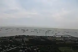 It includes Keppel Harbour and many small islands. The strait provides the deepwater passage to the Port of Singapore, which makes it very busy. Approximately 2,000 merchant ships traverse the waters on a daily basis in 2017.[3] The depth of the Singapore Strait limits the maximum draft of vessels going through the Straits of Malacca, and the Malaccamax ship class.