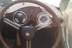 The successful Roadster re-appeared following the war, in 1946, with these modifications: non-lubricated rubber shackle bushes, improved seating accommodation provided by moving the engine forward and an improved lid at the rear of the body providing a flat platform for luggage.[7] These changes seem to have improved the handling.[5] Better engine mounts and other isolations were introduced, providing a smoother ride and lessening maintenance. Cars began to filter out to the dealers in September 1946.[8] Nearly all post war production was exported the car being popular with the Elite in India and featured in the collections of a few Maharaja's.