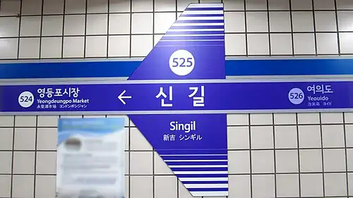 - ^ a b c d "신길역" (in Korean). KRIC. Retrieved 2015-10-06.