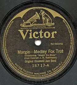 The ODJB released the song as part of a medley: "Margie" (Introducing "Singin' the Blues") in 1920 on Victor as B-24581-5 Victor 18717A backed with Palesteena. The subtitle of the song is "'Till My Daddy Comes Home". The personnel on the recording were Nick LaRocca, trumpet, Larry Shields, clarinet, Benny Krueger, alto sax, Eddie Edwards, trombone, J. Russel Robinson, piano, and Tony Sbarbaro, drums. The recording was made on December 1, 1920. Robinson and Conrad composed the music. Lewis and Young wrote the lyrics. The song was published by Waterson, Berlin & Snyder, Inc., in New York.