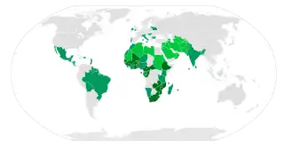In the 20th century, a number of national flags were designed involving green, especially in the Muslim world, based on the traditional symbolism of green in Islam, and as one of the Pan-Arab colours. Green is one of the Pan-African colours, and thus is also common among the national flags of African countries. Other countries have used the colour green in their flags to represent the "greenness" of their lands and abundance of their nation.