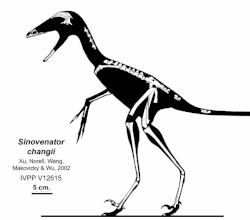 Sinovenator (meaning "Chinese hunter") is a genus of troodontid dinosaur from China. It is from the early Cretaceous Period.