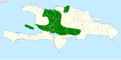 The nominate subspecies of least poorwill is found in the central and western parts of the Dominican Republic, especially Pedernales, Independencia, and Barahona Provinces, and adjoining Ouest Department in Haiti. S. b. gonavensis is found only on Haiti's Ile de la Gonâve. The species is thought to be generally rare, although it can be locally common, and is possibly under-reported. Recorded sightings are most common in the Dominican Republic, with very few in Haiti.[1][3]