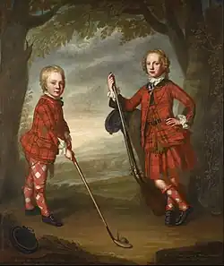 - ^ James Ogilvy, Lord Ogilvy took part in the Jacobite rising of 1715, for which he was attained by an Act of Parliament on 13 November 1715. Following his father's death in 1717, he became de jure 4th Earl of Airlie, however he could not claim the title because of the attainder. In 1725 he obtained a pardon from the Crown, and returned home but obtained a pardon from the Crown before his marriage to Anne Erskine in December 1830, shortly before his death in 1730.
