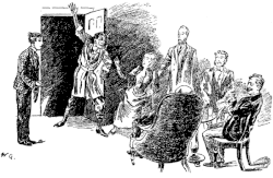 "...who not only looked rather like Mr Irving but seemed to imagine he was the celebrated actor... he began doing the Irving business all through supper. He sank so low down in his chair that his chin was almost on a level with the table, and twice he kicked Carrie under the table, upset his wine, and flashed a knife uncomfortably near Gowing's face."[28]