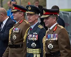 Carter was appointed Knight Commander of the Order of the Bath (KCB) in the 2014 New Year Honours.[36][37] On 21 February 2014 it was announced that Carter would assume the post of Chief of the General Staff.[38] He took up his post and was promoted to full general on 5 September 2014.[39] As of 2015, Carter was paid a salary of between £170,000 and £174,999 by the department, making him one of the 328 most highly paid people in the British public sector at that time.[40] Carter was awarded the US Legion of Merit on 18 March 2016 for services in Afghanistan.[41]