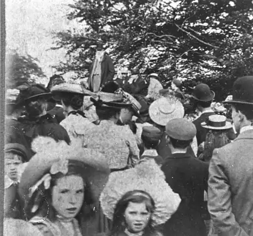 The vociferous cheers with which his sentiment was received showed that the feelings of the speaker were shared by his audience. It was however much condemned by the opposing press on the following day.