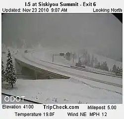 - ^ "ODOT advisory on Siskiyou Summit, also called Siskiyou Pass" (PDF). Oregon Department of Transportation. Archived from the original (PDF) on July 16, 2012. Retrieved May 21, 2013.
