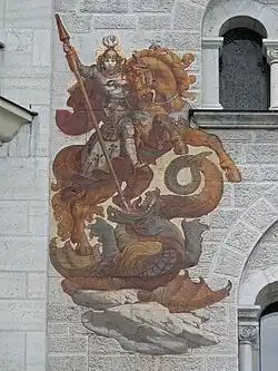 The Congregation originally asked for the name Sisters of St. Francis of the Sacred Heart, but there was already a religious Order by that name. They were encouraged to take the name of a parish they founded in Germany—St. George. The Martyr St. George was a soldier in the Diocletian military in Nicomedia when a war waged against the Christian religion. He laid aside his military dignity, refused to fight, and complained to the emperor. He was immediately thrown into prison where he was later tortured with great cruelty, but nothing shook his beliefs. He was led through the city and beheaded. He is usually depicted on horseback with a sword drawn at the dragon under his feet. This figure is only a symbolic representation that by his faith and Christian fortitude he conquered the devil, who is called a dragon in the Apocalypse.[11] From this image, he is often called St. George the Dragon Slayer.