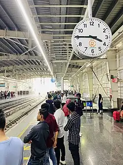 Sitabuldi is an elevated metro interchange station on the North-South corridor of the Orange Line and East-West corridor of the Aqua Line of Nagpur Metro in the city of Nagpur, Maharashtra, India which allows passengers to transfer between the Orange Line and the Aqua Line. It was opened to the public on 8 March 2019.[1] Aqua Line services commenced on 28 January 2020.[2] The station covers a total area of 250,000 square feet.[3]