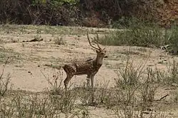 Animals in the sanctuary include Tigers, Leopards, Flying Squirrels, Jackals, Four-horned Antelopes, Chinkara, Black Buck, Jungle Cat, Barking Deer, Porcupine, Monkey, Bison, Striped Hyena, Sloth Bear, Wild Dogs, Chital, Sambar deer, Nilgai, Gaur, Muntjac, Wild Boar, Cobra, Python among many others.[2] The sanctuary is also a paradise for bird watchers, as over 175 species of birds can be seen here.[3]