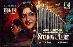 Sitaron Se Aagey (transl. Ahead of the Stars) is a 1958 Hindi Black-and-white family film written and directed by Satyen Bose. The film starred Ashok Kumar and Vyjayanthimala, with Johnny Walker, Rajasulochana, Shammi, Jagdish Sethi, Manmohan Krishna and Leela Mishra in supporting roles. The film was produced by V. L. Narasu. The film's score was composed by S. D. Burman with lyrics provided by Majrooh Sultanpuri. Editing was done by Bimal Roy and it was filmed by K. H. Kapadia.