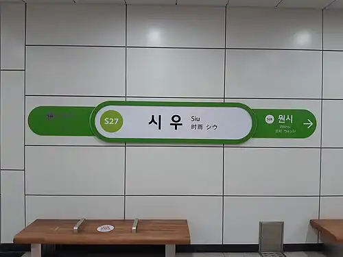 Siu station is a station on the Seohae Line in South Korea. It opened on June 16, 2018.[1][2]