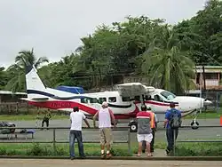 Siuna Airport is served by Avianca Nicaragua (La Costeña). The town may be reached by bus on the Managua - Puerto Cabezas Highway or through Waslala on the Matagalpa - Waslala - Siuna road. The bus from Managua to Siuna takes 12 hours through Rio Blanco on the Puerto Cabezas road. Siuna is located 99 kilometres (62 mi) from Waslala and takes about 6 hours by bus.