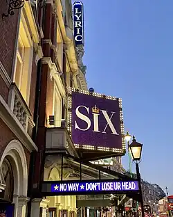On 5 December 2020, Six resumed performances, this time playing at the Lyric Theatre.[17] Despite the COVID-19 preventative measures implemented in London theatres, performances were once again forced to stop on 14 December 2020.[18]