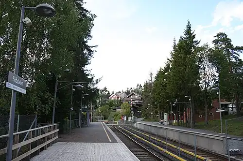 Skådalen is a station on the Holmenkollen Line (Line 1) of the Oslo Metro. It is between Midtstuen and Vettakollen.[1] The station was opened on 31 May 1898 as part of the tramway to Besserud.