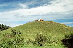 To the west of Skalunda Church is Skalunda Barrow (Skalunda hög).[4] It measures 65 metres across and it is 7 metres high. The burial mound has not yet been excavated, but C14 surveys from the ground have dated it to the beginning of the 6th century. Next to the barrow there is a stone circle consisting of seven circularstones.[5]