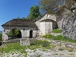 Moreover, remains of a 4th- to 3rd-century BC circular tower, a rectangular tower, a gate and two smaller doorways have been identified near the entrance of the village in the vicinity of the Monastery of St Paraskevi. Graves dating from Hellenistic times were unearthed in 2017. In the Ottoman period, Skamneli belonged to the Koinon of the Zagorisians (Greek: Κοινόν Ζαγορισίων) formed after a treaty with Sinan-Pasha in 1431. Ιt enjoyed along with the other villages a joint autonomy from Ottoman rule. The autonomy guaranteed non-interference from the Turkish administration. Zagorisians had their affairs entrusted to a Council of Elders called Demogerontia (Gr. Δημογεροντία), headed by a president or governor called Vekylis (Gr. Βεκύλης). They maintained a small force of Sipahi horsemen (Gr. σπαχήδες). The Koinon of the Zagorisians was reformalised by a treaty signed in 1670, under which Zagori enjoyed considerable privileges called "Surutia", which were only rescinded by the Sultan in 1868. In the later part of the 17th century, the inhabitants of several hamlets began to resettle in Skamneli. The reason was probably raids from bandits. One major such raid is recorded in the books of the Monastery of St Paraskevi, according to Frangoulis[4] dated to 1688, by one named Ali Chogmeno at the head of 166 men. He gathered the women and children in the Church of the Apostles (Agioi Apostoloi) and began looting the village. Armatoloi arrived from Doliani, another village in Zagori, under their captain Douvlis and dispersed the bandits after killing Ali Chogmeno. At the time Skamneli had about 1000 inhabitants and was surrounded by several hamlets with an additional 800 inhabitants.