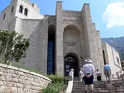 The National History Museum "Gjergj Kastrioti Skënderbeu" (Albanian: Muzeu Historik Kombëtar "Gjergj Kastrioti Skënderbeu"), also known as the Skanderbeg Museum or the Kruja Museum, is located in Krujë and is one of the most important and visited museums in Albania. The museum was built at the end of the 1970s and was inaugurated on November 1, 1982. Its architecture was designed by architects Pirro Vaso and Pranvera Hoxha (the daughter of Enver Hoxha). Construction works were realized by a local team managed by Robert Kote. The museum has the character of a memorial, architecturally inspired by traditional Albanian stone towers and medieval Romanesque architecture.[1] The name of the museum is in the honor of the Albanian national hero Gjergj Kastrioti Skënderbej.