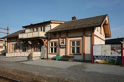 Skarnes Station (Norwegian: Skarnes stasjon) is a railway station located in the village of Skarnes in Sør-Odal Municipality, Norway. It is on the Kongsvinger Line (Kongsvingerbanen). The station was constructed in 1862 as part of the opening of the Kongsvinger Line. The rail station building was designed by the architectural firm of Heinrich Ernst Schirmer and Wilhelm von Hanno.[1]