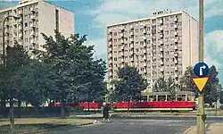 There were built eight 13-storey multifamily residential large panel system-buildings, and a technical and administrative building, located on Bielawska Street, Puławska Street, and Żywnego Street.[1][2][9] They were built in place of the houses originally built in the 19th century to house patients of the hydrotherapy facility operated between 1840 and 1866 by physician Ludwik Sauvan.[11]