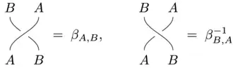 The braided monoidal structure on a fusion category can be depicted as follows.