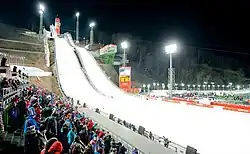 Ski jumping at the 2014 Winter Olympics was held at the RusSki Gorki Jumping Center, Krasnaya Polyana, Russia. The events were held between 8 and 17 February 2014. Women competed in ski jumping for the first time in the history of Winter Olympic Games.[1] A total of four ski jumping events were held.[2]