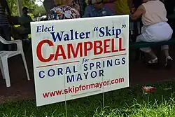 - ^ a b c Huriash, Lisa J. (July 19, 2014). "'Skip' Campbell enters Coral Springs mayor race". Sun-Sentinel. Archived from the original on November 3, 2014. Retrieved January 10, 2016.