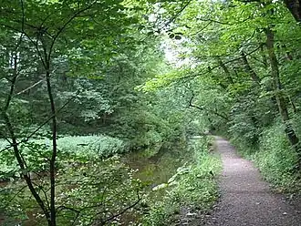 The 36.77-acre (14.88 ha) woods have the Eller Beck flowing through them, which connects to the River Aire and are accessible from the Leeds and Liverpool Canal.[5] The woods are also the starting point for Lady Anne's Way.[4][6]