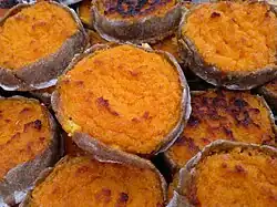Sklandrausis (pl.: sklandrauši; Livonian dialect: sklandrouš, from Curonian: sklanda – 'fence-post, wattle fence, slope, declivity';[2] Livonian: sūrkak, pl.: sūr kakūd), žograusis (pl.: žograuši) or dižrausis (pl.: dižrauši) is a traditional Latvian dish of Livonian origin. It is a sweet pie, made of rye dough and filled with potato and carrot paste and caraway.[1]