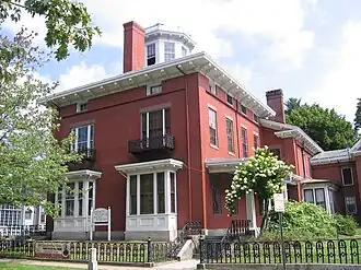 The Skolfield–Whittier House is one half of an Italiante-style duplex built between 1858 and 1862 for the sons of wealthy shipbuilder Master George Skolfield (1780–1866). Captain Alfred Skolfield (1815–1895) owned the side that is now known as the Skolfield–Whitter House, splitting the construction cost of $15,751.96 with his brother Captain Samuel Skolfield (1826–1916), who owned and lived in the other side of the building (now used as the Pejepscot Historical Society headquarters).[1]