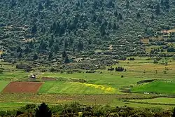 The village rests high on a side of the mountain chain Oligyrtos, whose sediments during geological ages gradually weathered and became an alluvial fan. The sediments are now a fertile slope. Detrital slopes also filled the bottom of the Skoteini-Alea-Plain - a valley, 15 km from north to south. In this plain generations of the villagers earned their living by animal husbandry (mainly goats) and agriculture.