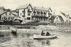 In the middle of the 19th century, Skovshoved, like the other fishing villages along the Øresund coast, began to attract summer visitors from Copenhagen. Some visitors stayed at the inn while others rented rooms with the local fishermen. With the opening of the Klampenborg Railway in 1863 and the Coast Line the area became more accessible. The more wealthy summer visitors began to build country houses. Skovshoved Inn was converted into a modern beach hotel by the architects Viggo Klein and Andreas Thejll in 1895.
