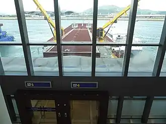 22°19′07″N 113°56′40″E / 22.3185°N 113.9444°E Skypier Terminal (Chinese: 海天中轉大樓) is a cross-border facility that includes a ferry pier and a coach bay integrated within Hong Kong International Airport, Chek Lap Kok, New Territories, Hong Kong. It is operated by Hong Kong International Airport Ferry Terminal Services Limited, a joint-venture company between Chu Kong Passenger Transport Co., Ltd and Shun Tak-China Travel Ship Management Limited.[1] At this building, passengers aboard can transit from Hong Kong International Airport to piers in the Pearl River Delta of Guangdong Province or vice versa, without immigration and customs clearance through Hong Kong. Passengers can also transit to Macao through coaches or vice versa, without immigration and customs clearance through Hong Kong.