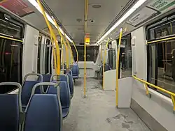 Each Mark I car has 36 seats and a capacity of 80 passengers.[11] Mark I trains have spaces dedicated for wheelchair users, bicycles, and strollers.