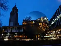 Sky Mirror is a public sculpture by artist Anish Kapoor.[1] Commissioned by the Nottingham Playhouse, it is installed outside the theatre in Wellington Circus, Nottingham, England.[2] Sky Mirror is a 6-metre-wide (20 ft)-wide concave dish of polished stainless steel weighing 10 tonnes (9.8 long tons) and angled up towards the sky. Its surface reflects the ever-changing environment.[2]