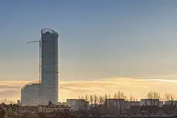 Sky Tower is a skyscraper in Wrocław, Poland. At 212 metres (696 ft) and featuring 51 floors, it is the tallest building in Wrocław and was also the tallest building in Poland in the category of height to roof until Varso Tower overtook it in 2022. Construction began in 2007 and was completed in 2012.