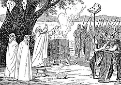 Usually, common people were not allowed into the presence of the images of their gods, the sight of which was a privilege of the priests. Many of these images were seen and described only in the moment of their violent destruction at the hands of the Christian missionaries.[5] The priests (volkhvs), who kept the temples and led rituals and festivals, enjoyed a great degree of prestige; they received tributes and shares of military booties by the kins' chiefs.[23]