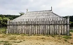 They were built on upraised platforms, frequently on hills,[35] but also at the confluences of rivers.[23] The biographers of Otto of Bamberg (1060/1061–1139) inform that these temples were known as continae, "dwellings", among West Slavs, testifying that they were regarded as the houses of the gods.[43] They were wooden buildings with an inner cell with the god's statue, located in wider walled enclosures or fortifications; such fortifications might contain up to four continae.[23]