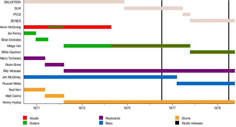 - Midge Ure — guitars, backing vocals (March 1972-September 1977), lead vocals (April 1974-September 1977)
