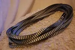 Slings come both sewn to length and assembled from loose webbing knotted as desired. Common sewn lengths include 10 centimetres (3.9 in), 30 centimetres (12 in), 60 centimetres (24 in), 120 centimetres (47 in) and 240 centimetres (94 in). They are available in widths of 6–20 millimetres (0.24–0.79 in). Webbing for slings, also known as tape, is sold off the reel, cut to length with a hot knife to prevent fraying, and tied. The most common knot used for nylon slings are water knots and double fisherman's knots. Dyneema/Spectra slings are usually sewn not tied due to very high lubricity which leads to poor knot-holding ability and has led to the recommendation to use the triple fisherman's knot rather than the traditional double fisherman[3]